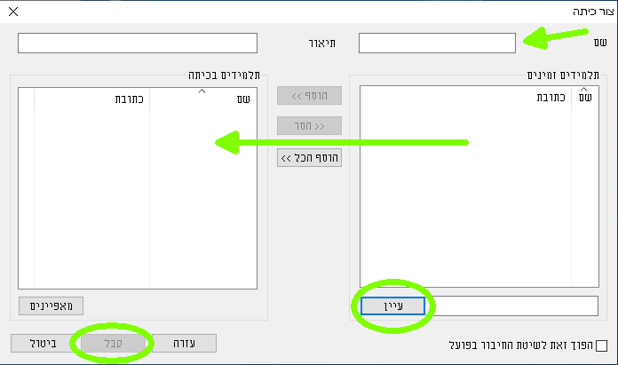 2א. לחצו על סיים כיתה (מאותו תפריט), ייפתח חלון כיתה חדשה.