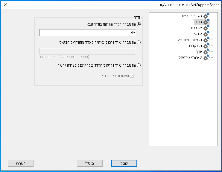את שם החדר הנוכחי תוכלו לראות כאשר מצביעים עם העכבר על הסמל של NetSupport School (NSS) בשורת המשימות, כאן בדוגמה החדר הוא gw :