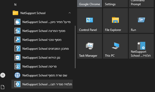 1. פתחו את NetSupport School תלמיד מגדיר תצורת דרך החיפוש או תחת NetSupport Scool בתפריט התוכניות.