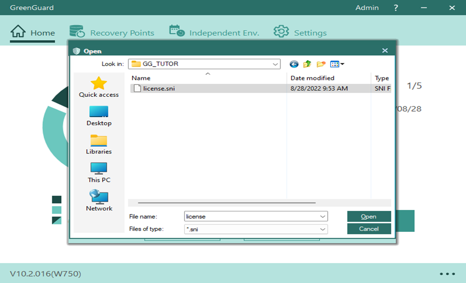 10. מיד לאחר מכן יפתח לנו חלון שממנו נבחר את הקובץ license.sni שנמצא על ה USB ונלחץ על Open ובחלון הבא נלחץ על Register.
