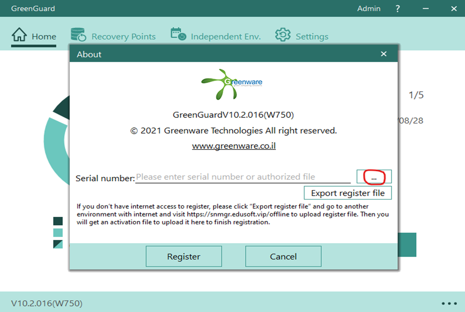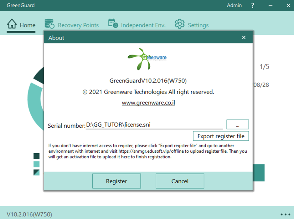 מדריך זה מסביר אך מפעילים רישיון של גרין-גארד בעמדה חסומה לאינטרנט