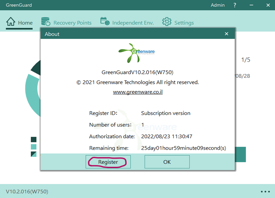 לאחר שלחצנו על Register סיימנו את תהליך האטיבציה של הרישיון